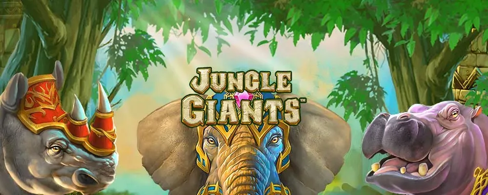 Jungle Giants es un tragamonedas de 5 carretes con tres filas y 50 líneas de pago fijas. Unos marcos dorados adornados albergan a los carretes; mientras que el telón de fondo está formado por templos de piedra en ruinas en los que los elefantes fueron adorados como reyes de la jungla.